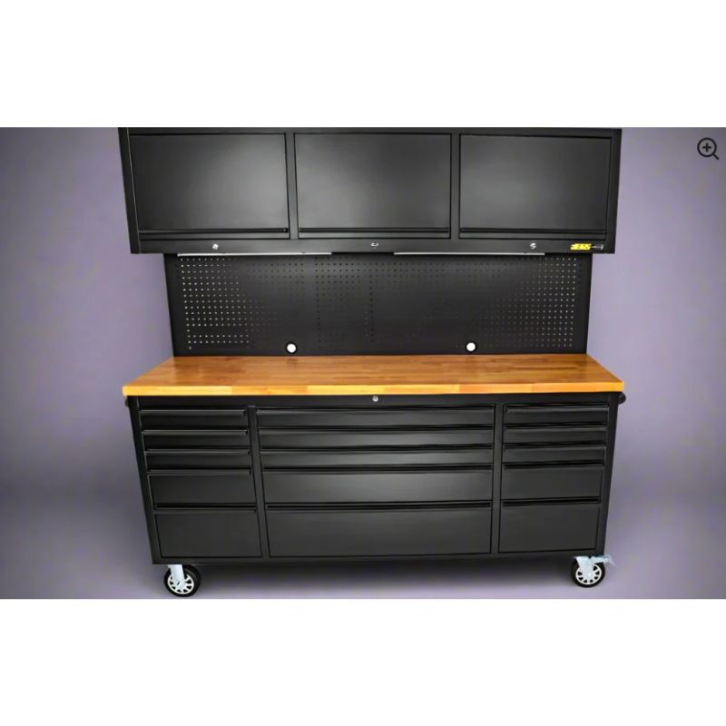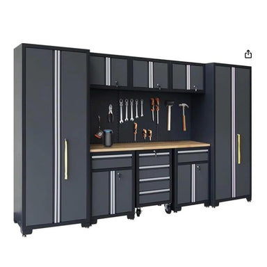 View full detailsThis comprehensive garage storage cabinet set includes a durable rubber wood worktop for hands-on tasks, wall cabinets for organized storage and an...